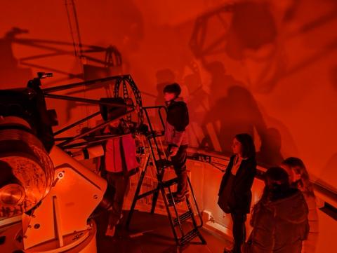 Les élèves du collège Louis Jouvet ont pu monter dans la coupole et découvrir le fonctionnement du télescope. En théorie seulement, car malheureusement le ciel était trop nuageux ce soir là pour permettre une observation en direct.