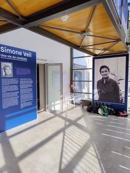 Visite guidée de l'exposition Simone Veil et visite guidée du lieu de mémoire et des extérieurs (plaques commémoratives).